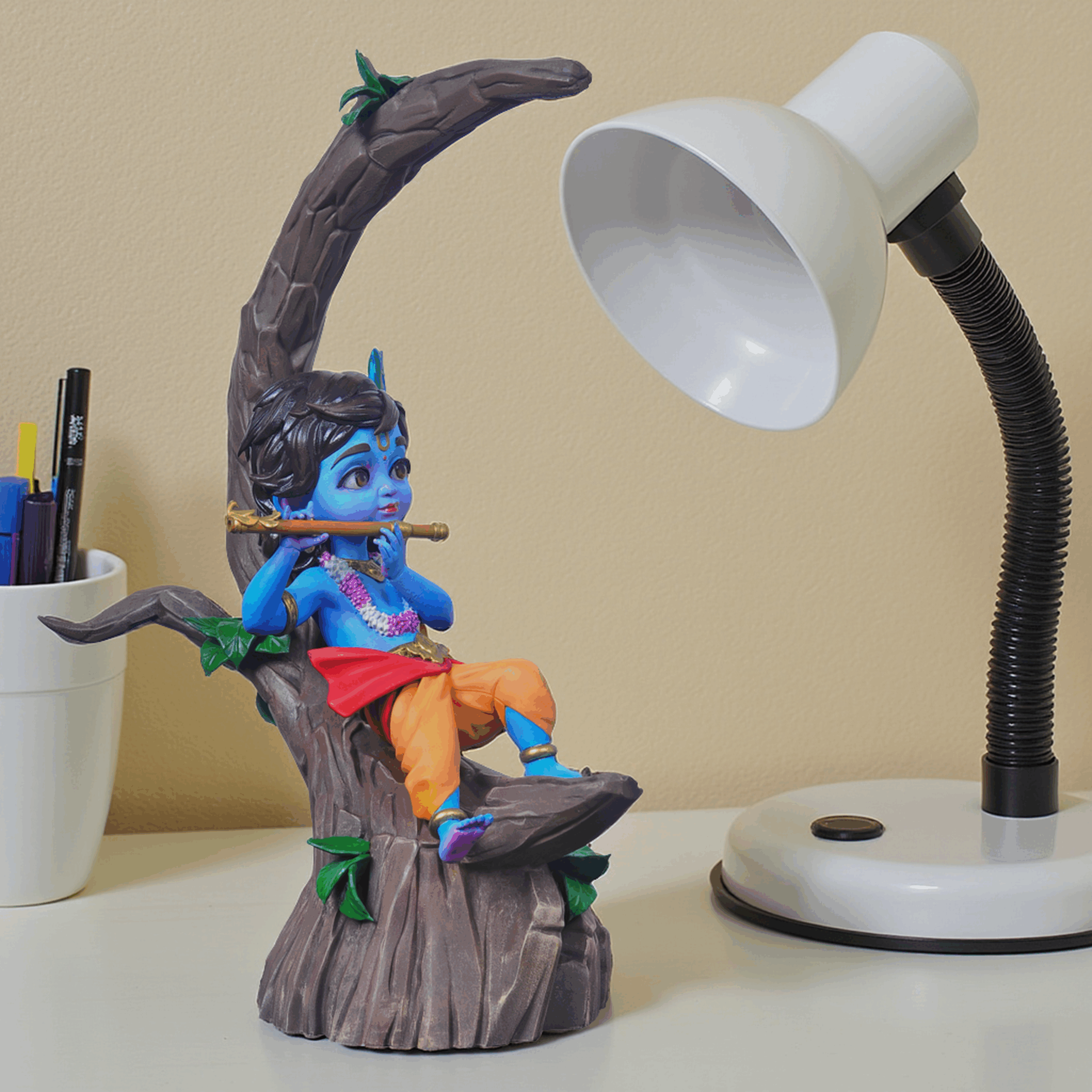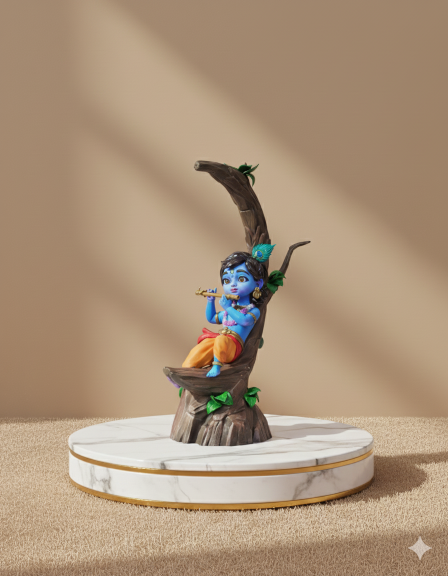 A collector‑grade sculpture capturing Krishna in a moment of serene repose, flute in hand as the melody lingers. Crafted with meticulous detail, it blends traditional artistry with contemporary design, offering a timeless piece that embodies devotion, tranquility, and the art of craftsmanship. Presented in luxury packaging, it is designed for discerning collectors who value authenticity and emotional resonance.